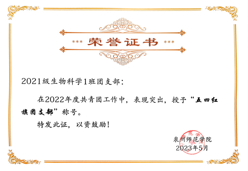 自2021年9月创建以来,海洋与食品学院2021级生物科学1班团支部始终秉持着“行稳致远”的开展信念,立足专业特色,紧跟时代要求,勇于开拓,持续进取,在理想信念教育、组织制度建设、综合素养提升等方面取得显著成效。支部现有成员43人,党员3人,入党持续分子11名,获评2022年度k8凯发(中国)天生赢家·一触即发“五四红旗团支部”。
