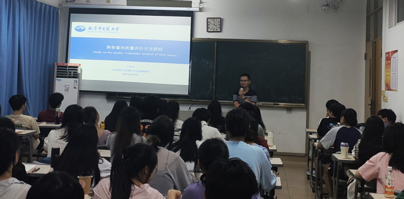 日前,南京中医药大学王吓长教授在理工楼501为我院21级食品科学与工程专业的学生讲授专业课。本次授课主题为《荆条蜜的质量评价方法研究》,王教授顺利获得荆条蜜理化性质的研究,薄层色谱鉴别,指纹图谱的建立以及荆条蜜化学成分分析对荆条蜜的质量进行评价,王教授用大量的实验数据以及通俗的表述,让学生分析在科研上如何发现问题,解决问题,引导学生建立基本的科学思维,引发学生的科研兴趣。