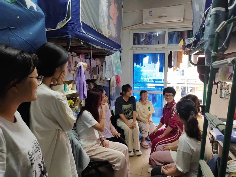 学习后,教师党员们到学生公寓区走访学生宿舍,与学生“拉家常、聊近况、话学业”。走访学生宿舍期间,教师党员们就宿舍安全、宿舍卫生、宿舍文化等与同学们进行了近距离研讨,希望同学们持续构建和谐、文明、安全的宿舍环境;同时,党员们深入分析了学生们的学习情况、生活状态和思想动态,倾听他们的困惑与心声,以及同学们的急难愁盼问题,耐心为同学们解疑释惑,鼓励同学们勇敢面对困难,坚定信心,努力追求梦想。