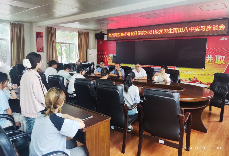 2024年10月28日,学院院长袁建军、党委书记蔡志荣、生物科学系主任陈细香和带队老师傅淑专程前往莆田第八中学,看望并慰问在此进行教育实习的20位2021级生物科学专业实习生。