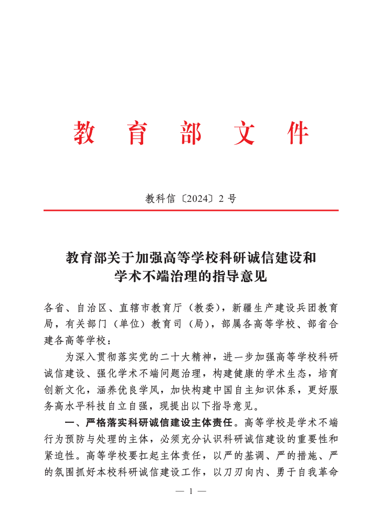 教育部:关于加强高等学校科研诚信建设和学术不端治理的指导意见