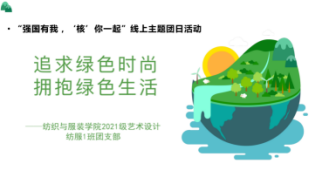 421日下午,2021级艺术硕士纺服1班召开“强国有我,核你一起——追求绿色时尚,拥抱绿色生活”主题团日活动。